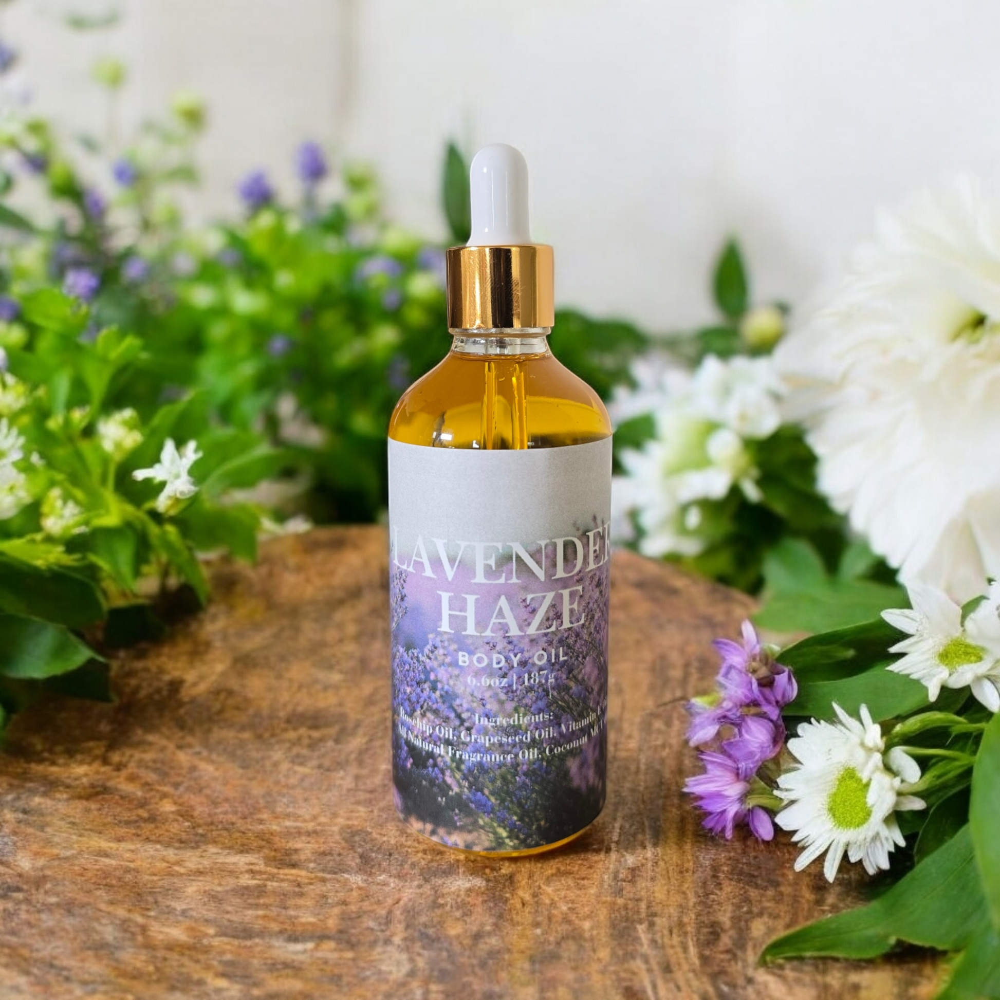 Lavender Haze body oil! Pure lavender bliss and ultra-hydrating oils combine to keep skin silky-smooth and oh-so-glowy. Glide it on, take a deep breath, and let the good vibes roll!