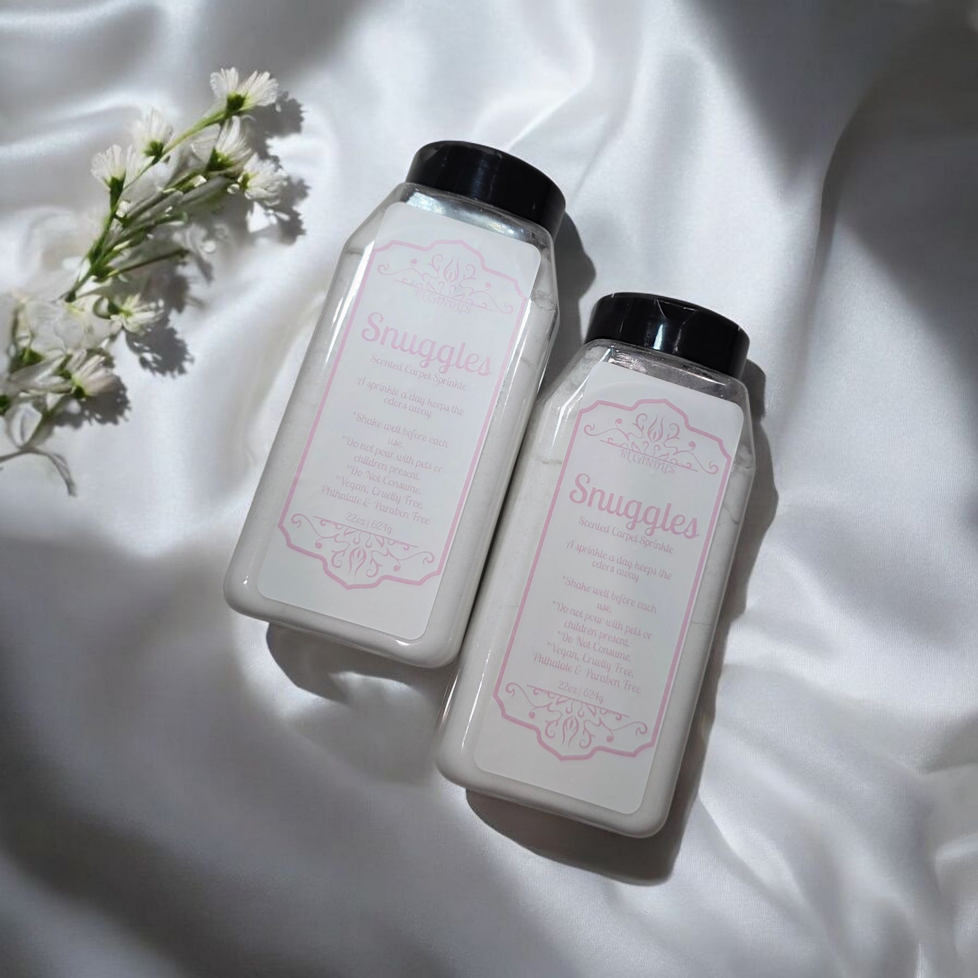 Snuggles Carpet Sprinkle is a warm, comforting blend of sweet pea, jasmine, lily of the valley, and gardenia, all wrapped in soft musky woods.